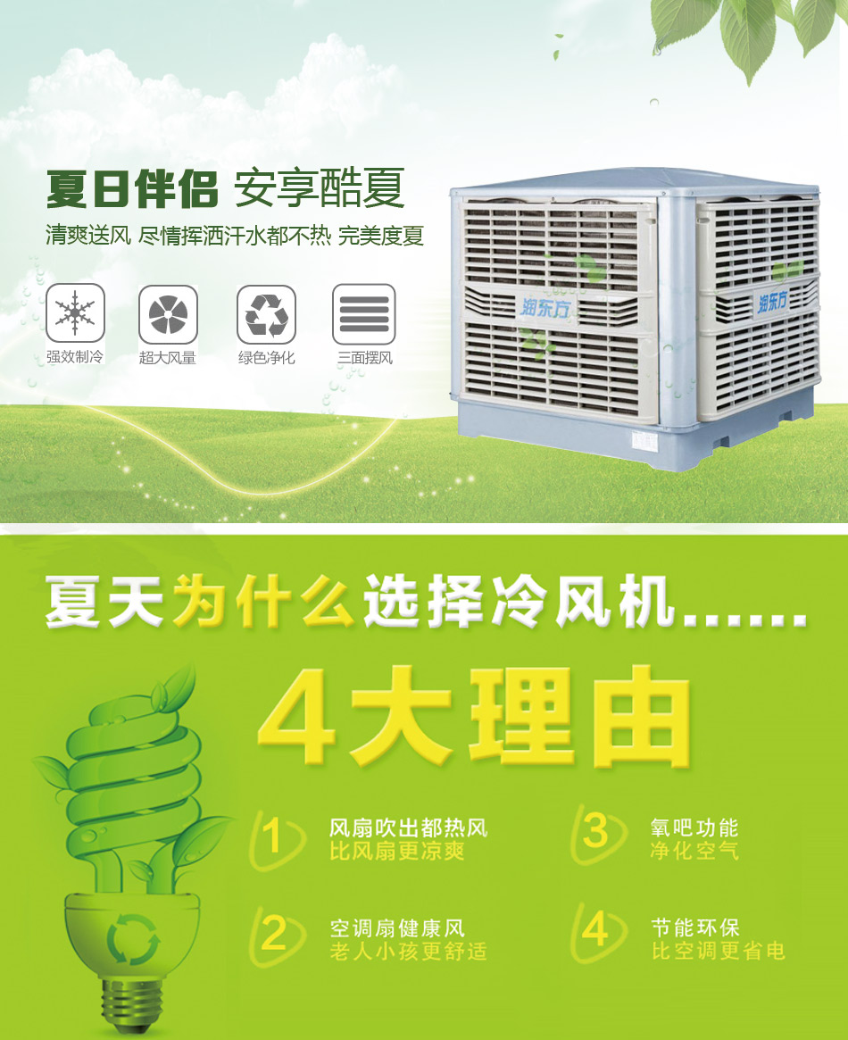| 做到降溫效果 | √ | ★★★★★ | √ | ★★★★★ | × | ★ | 結論 潤東方冷風機總費用每年比傳統空調節省25200元而且綜合效果比傳統空調好。 潤東方冷風機每年總費用比同等面積所需傳統風機節省5040元,且效果遠比傳統風機卓越。 |