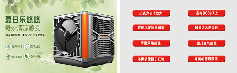 水冷空調,又稱蒸發冷風機,是一種集降溫、換氣、防塵、除味于一身的蒸發式降溫換氣機組。水冷空調除了可以讓企業車間、公共場所、商業娛樂場合帶來新鮮空氣和降低溫度之外,還有一個重要特點----節能、環保!它是一款全新無壓縮機、無冷媒、無銅管的環保產品,主要部件核心-----蒸發式濕簾(多層波紋纖維疊合物)及1.1KW的主電機/是傳統中央空調耗電1/8,能為各行業更實在的省電。